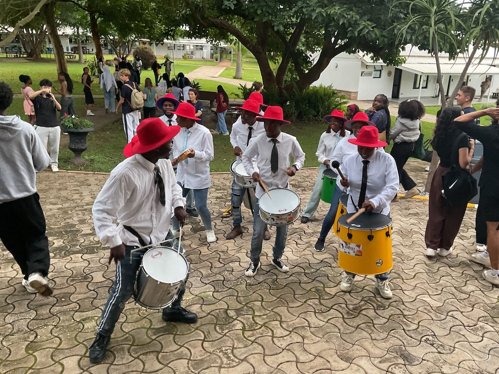 They also enjoyed performances by El-Mukaka, a Zambian-Greek DJ and Afro-House pioneer, and energetic Brazilian drummers, who had everyone on their feet. Some of the most meaningful learning happened outside the sessions: walking through Zambia’s history, trying matebeto, a traditional dish, navigating unfamiliar spaces, and learning to adapt. These moments stretched our students, helping them grow in independence, empathy, and resilience. Our delegation returned with new confidence and broader perspectives. The group shared their full experience with the whole school at Assembly.